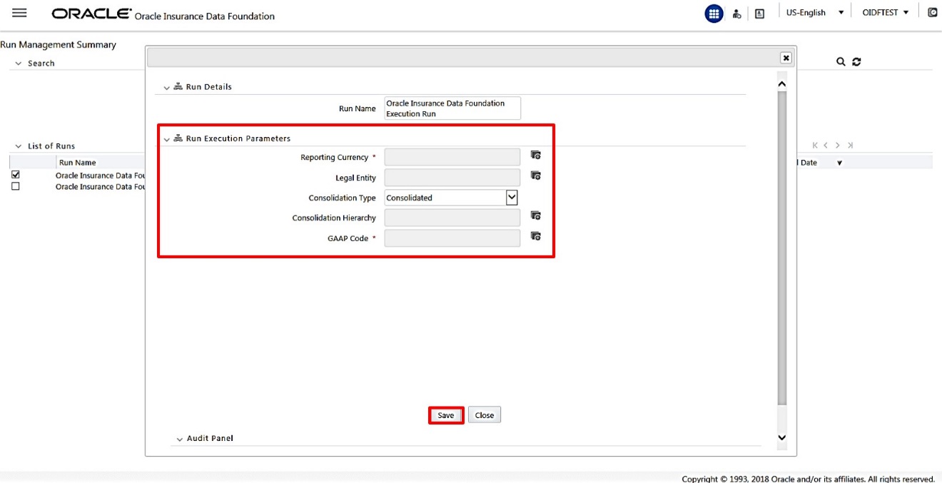 In the List of Runs section, select the required Run Name. Select either Oracle Insurance Data Foundation Execution Run or Oracle Insurance Data Foundation Sourced Run.