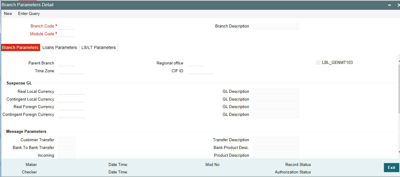 A set of rules that govern the loans that you disburse in a particular branch (of your branch) are defined through the Branch Parameters screen.