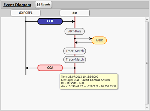Diameter Answer processing routine invoked | IR Data | Diameter Answer processing routine invoked appends a text to the corresponding Application bubble. |