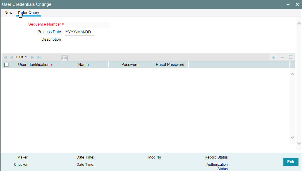 You can change or reset user passwords in bulk if you have the system admin rights. After modification of the user list, click ‘Save’, The modified user list will be stored in a temporary table. The lists of users which are modified and mapped with a unique sequence number will not be available until the particular sequence number is authorized. When the particular sequence number is authorized those user details will be changed and updated.