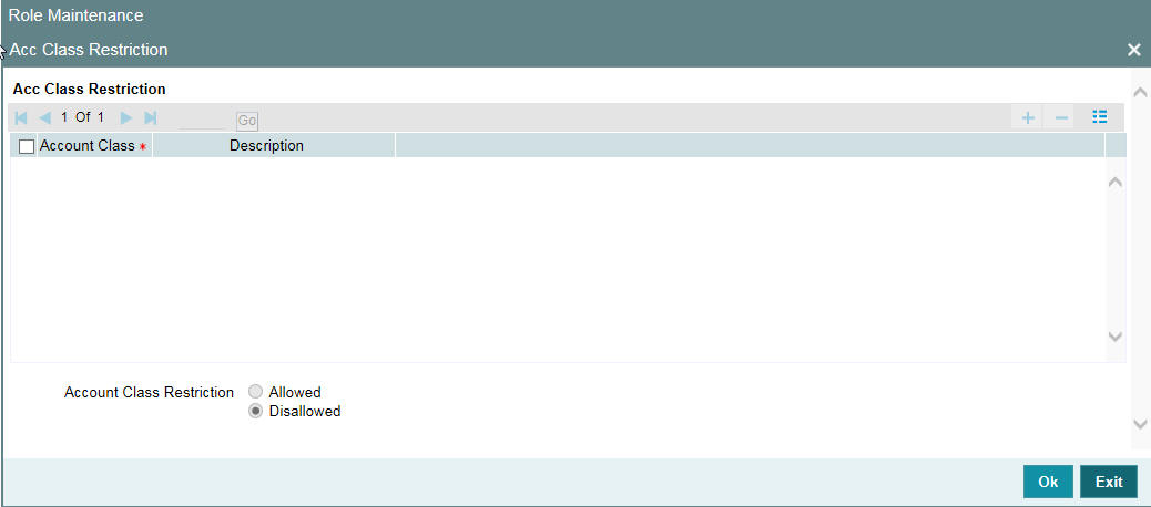 Restricted account classes can be viewed in ‘Account Class’ option list at User Role level and not at User Profile level.