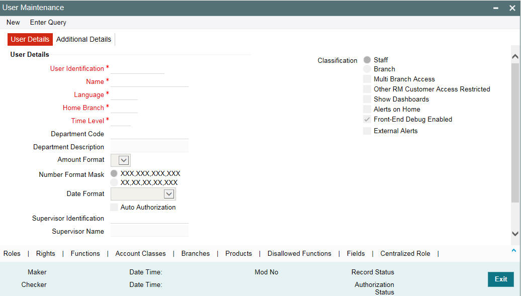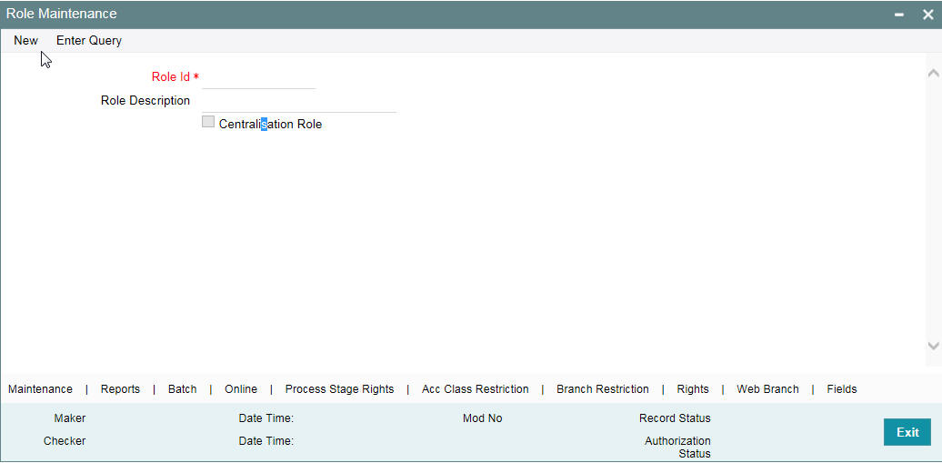 If the multi branch operational parameter is enabled and the centralization roles are defined, then the roles are automatically assigned to the branches based on the branch restricted details specified in the user maintenance screen. You can also include additional list of normal roles from the Roles sub screen.
