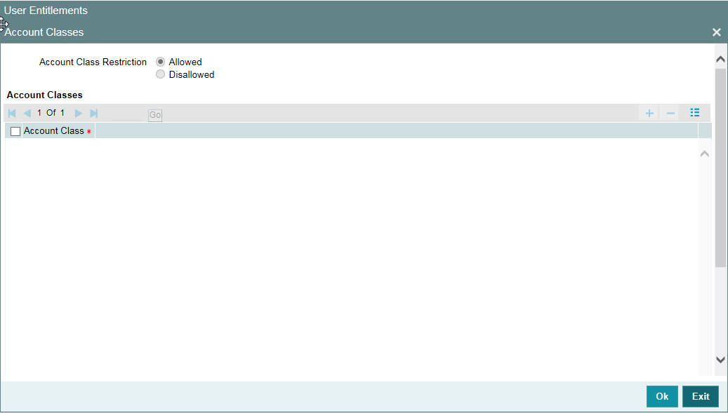 Click ‘Account Classes’ button to specify such account class restrictions.