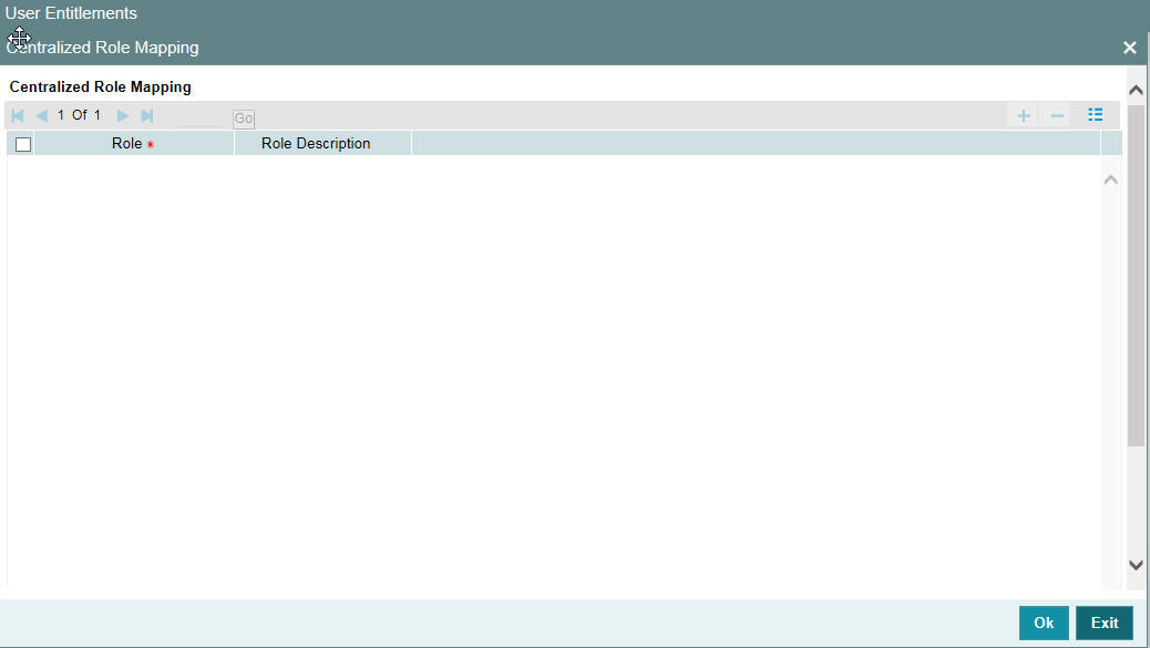 The centralization role can be linked to a user here. You can view centralized role maintained for the user profile in the ‘Centralized Role’ screen. Click ‘Centralized Role’ button to invoke this screen.