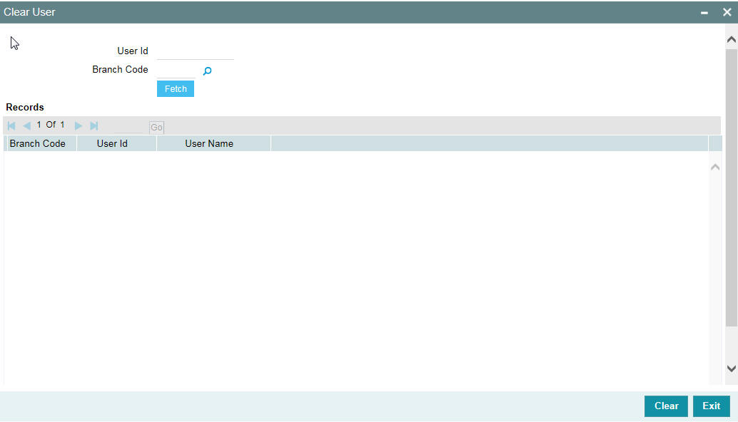 Such User IDs can be cleared through the ‘Clear User Profile’ screen.You can invoke this screen by typing ‘CLRU’ in the field at the top right corner of the Application tool bar and clicking on the adjoining arrow button.