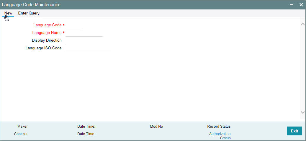 For example, for English language, the code you could enter in Oracle Banking Payments could be ENG.