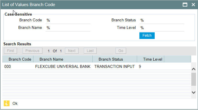 Through this function, you can change the branch of operation to a branch other than the one you are signed on to. The branches to which you can change into will be defined in your user profile. You can change your branch of operation only when a function that has been initiated by you in the current branch has been completed.