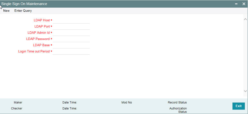 Once SSO has been enabled for your bank, the SSO parameters need to be maintained. This can be done using the ‘Single Sign On Maintenance’ screen. You can invoke this screen by typing ‘SMDSOPRM’ in the field at the top right corner of the Application tool bar and clicking on the adjoining arrow button.