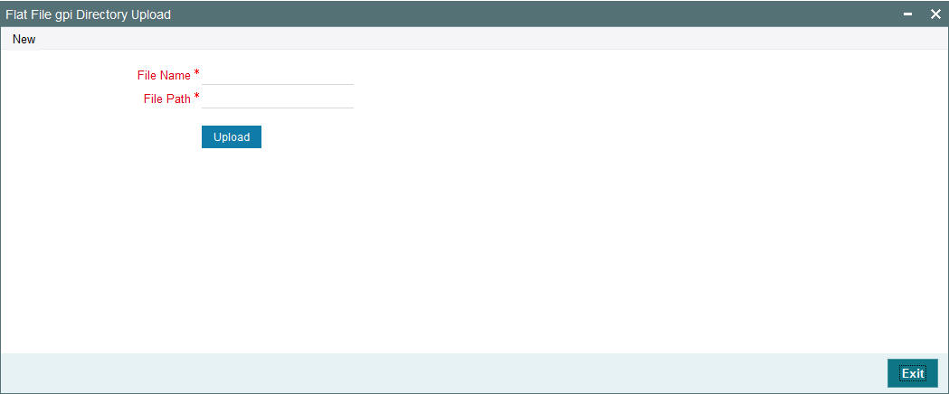 You can invoke the ‘GPI Directory Upload’ screen by typing ‘PMDGPIUP’ in the field at the top right corner of the application toolbar and clicking the adjoining arrow button.Click new button on the Application toolbar.