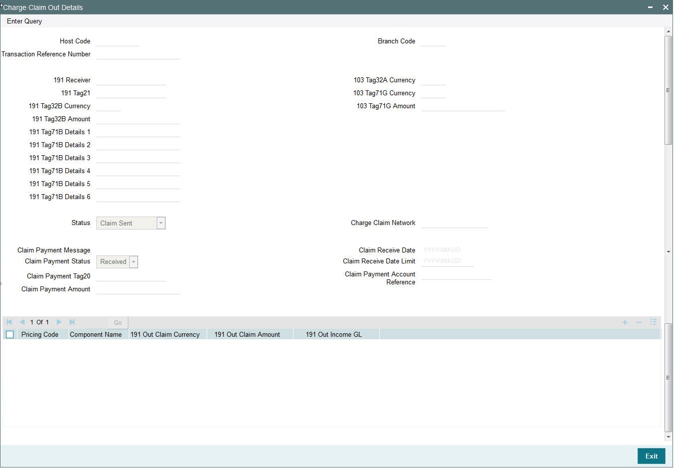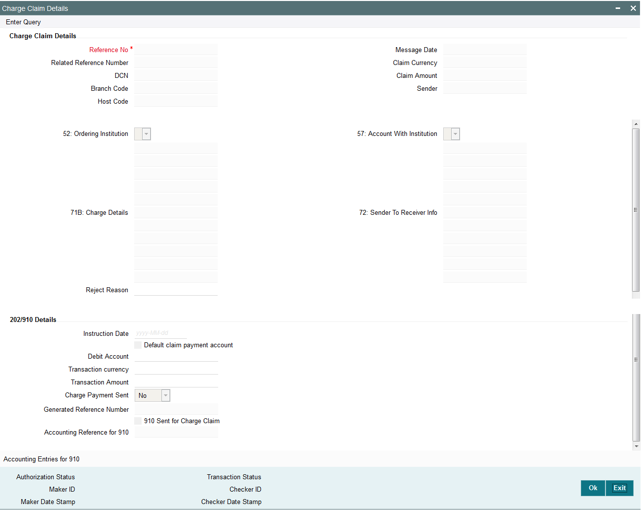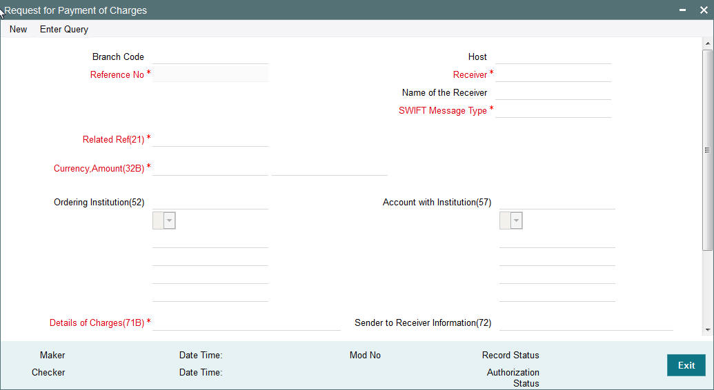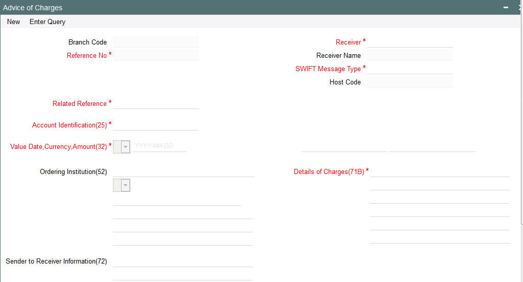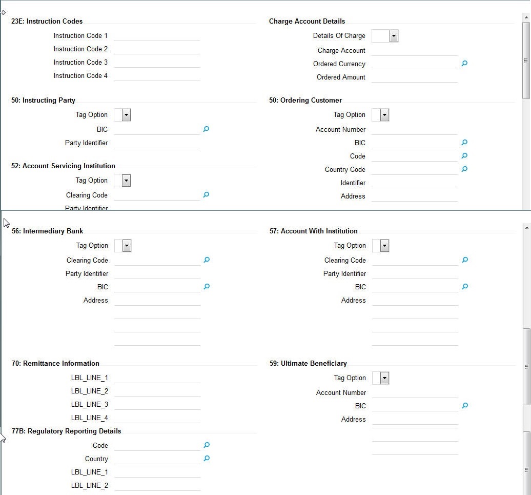 You may choose to override the system derived Receiver with a different BIC code and input the same over here. On save, sytem validates if a SWIFT message can be sent to the user specified Receiver BIC code.