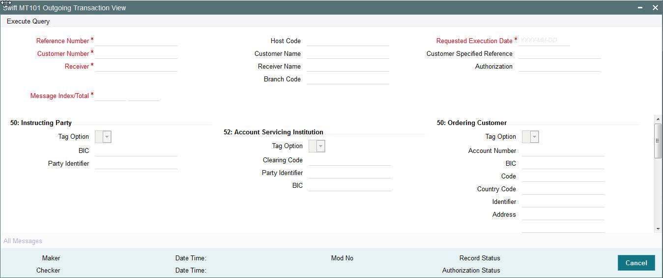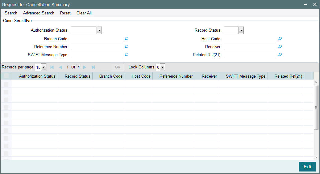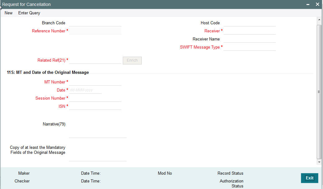 This screen is used to generate a Cancellation request n92 message for a payment message sent earlier.