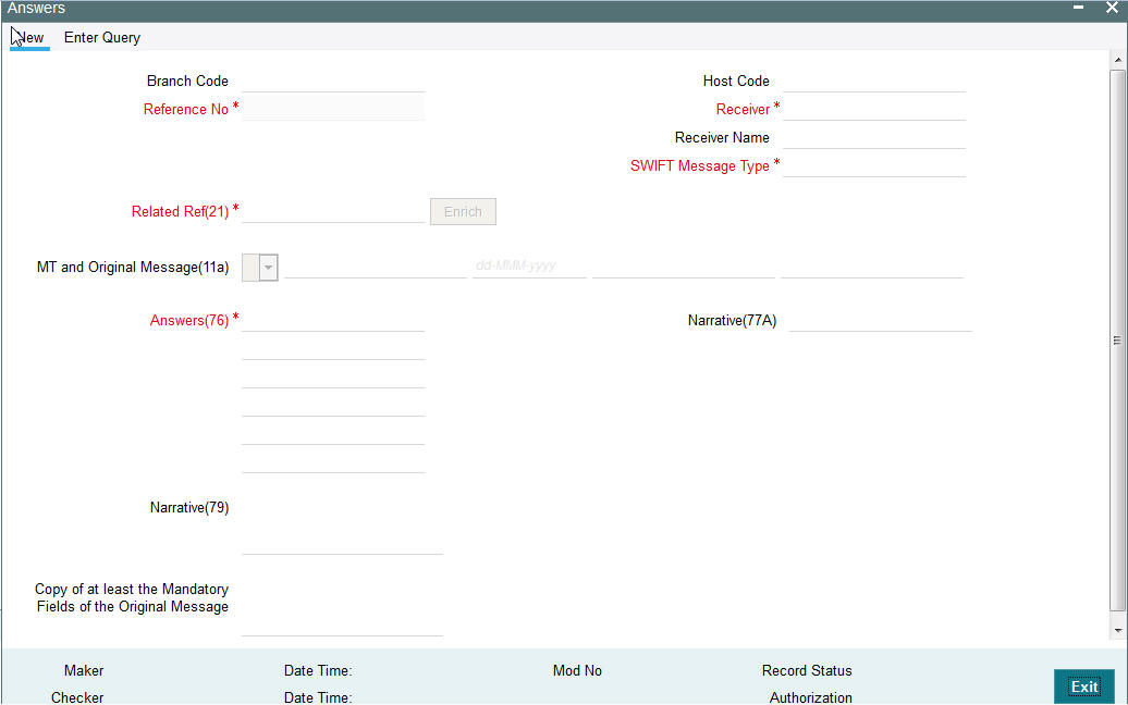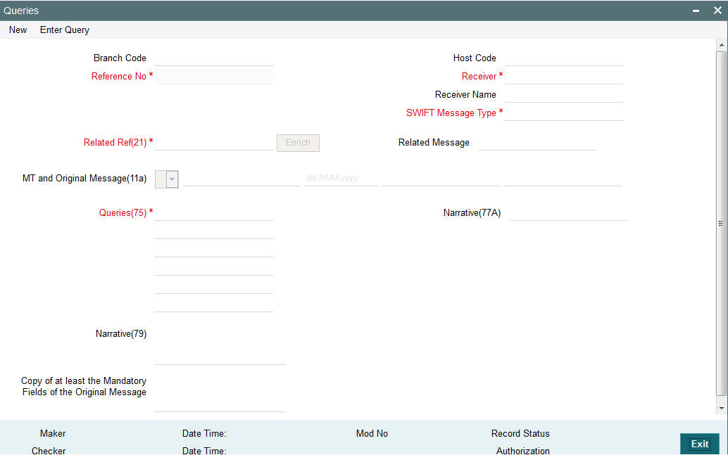 System will allow user to input the Tag 21-Related Reference. On save & authorize system will generate the message and handoff to EMS for sending to SWIFT network.