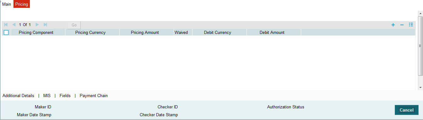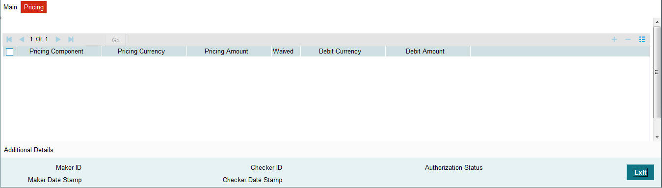 You can invoke the ‘Additional Details’ sub-screen in Transaction Input by clicking the “Additional Details” link present at the bottom of the screen.