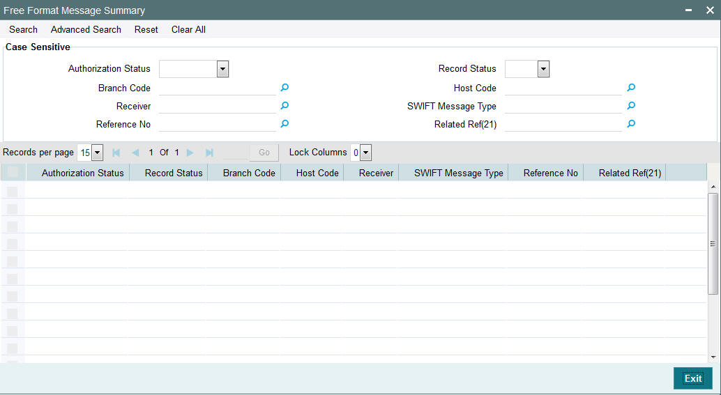 You can view the Free Format Messages generated using the summary screens of respective Common Group Messages.