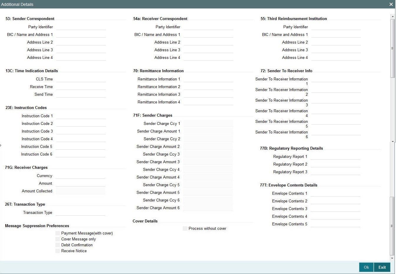 You can capture below mentioned details of the intermediary bank here.