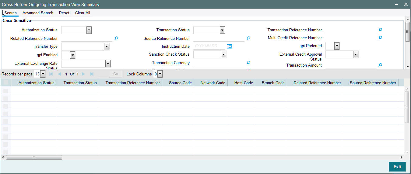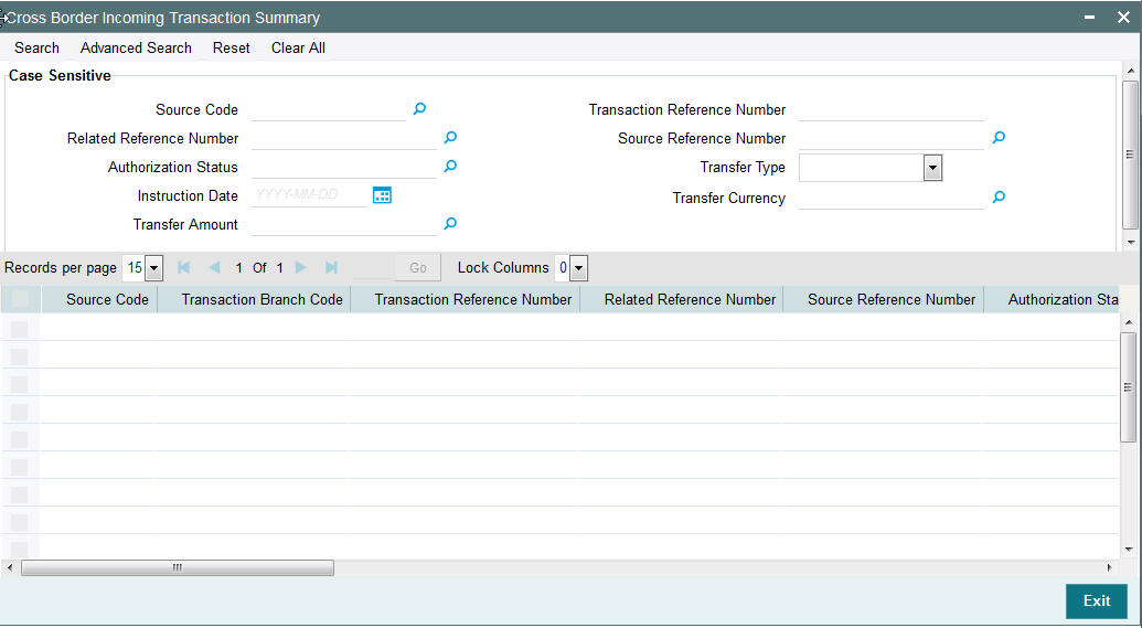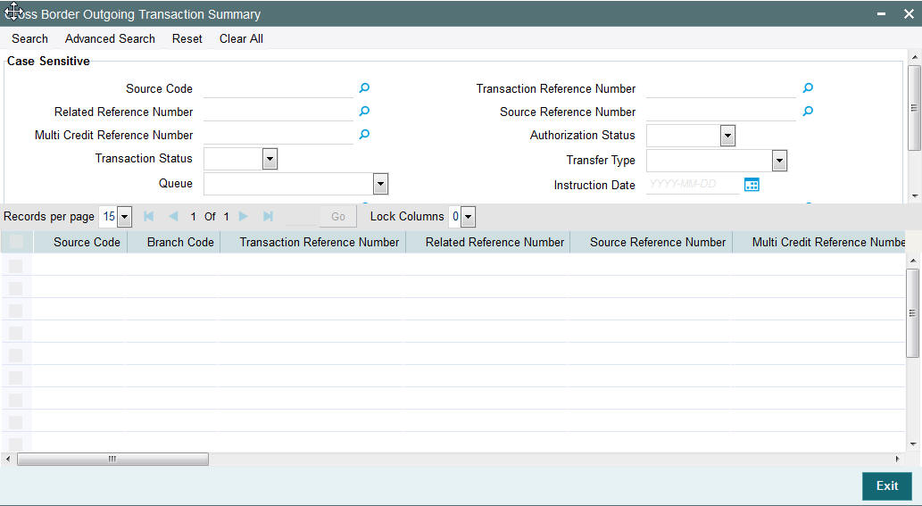 Once you have specified the search parameters, click ‘Search’ button. The system displays the records that match the search criteria for the following: