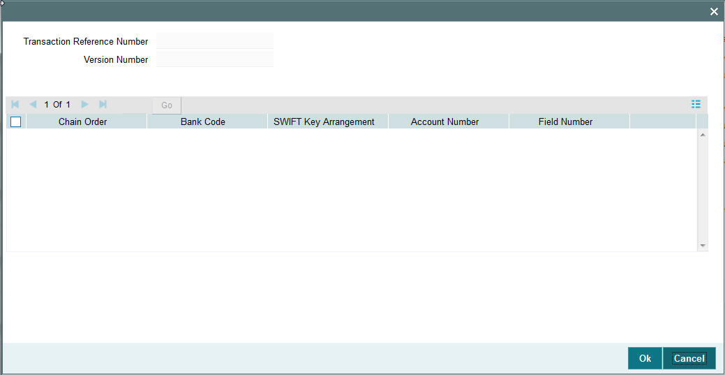 The system displays the Party Identifier, BIC code or details like Name and Address of the sender’s correspondent through which the payment transaction should be routed. This value is populated after deriving the Payment chain as part of the processing. This BIC would be present in the Currency Correspondent maintenance for the Transfer currency.
