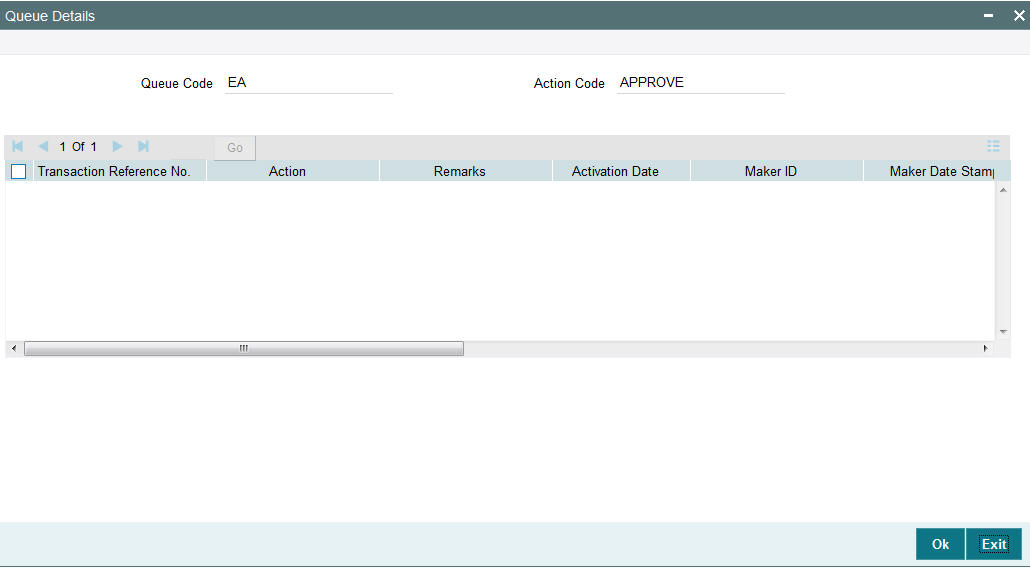 | View Queue | Displays all queue activities performed for the selected transaction. | ||