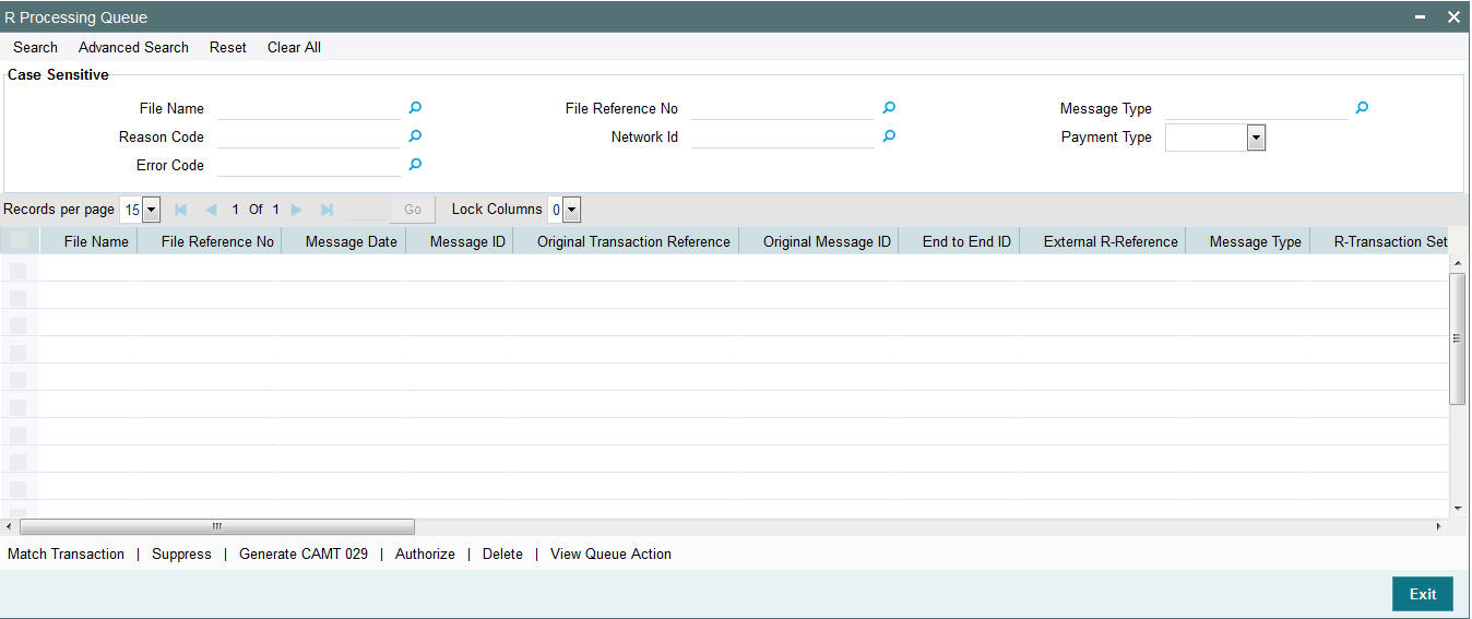 All payment transactions with the status ‘R’,’O’,’T’ will be listed in Sanction check queue. If the response is received as rejected-’R’, then system will cancel the transaction automatically if the external system status code is marked for auto cancellation.
