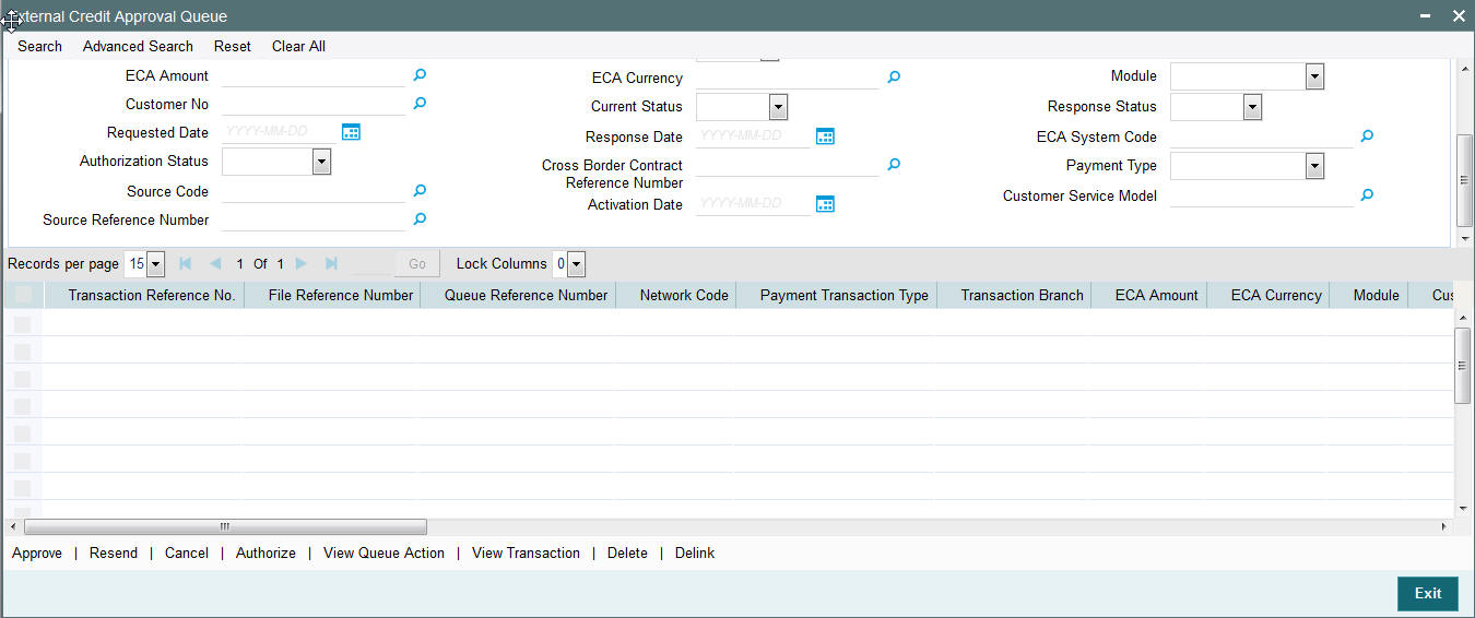 | Resend | This option will allow the submission of transaction for ECA again if the transaction is in 'O' or 'T' status. New reference number will be created. Bulk resend will not be allowed. Resend Action will not support authorization. | ||