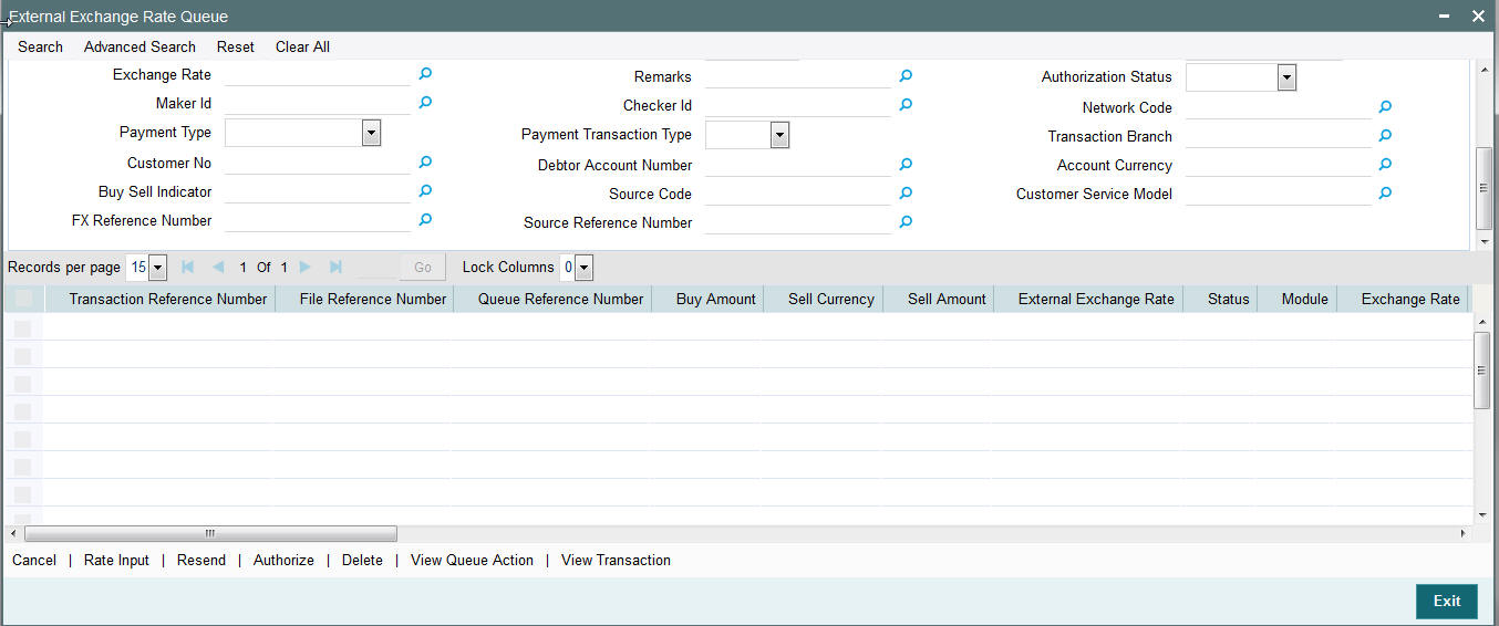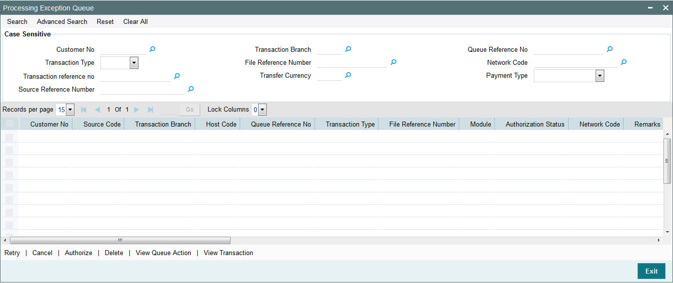 If a response is received as rejected, then the system will cancel the transaction automatically. Only View Exception option will be applicable to such transactions.