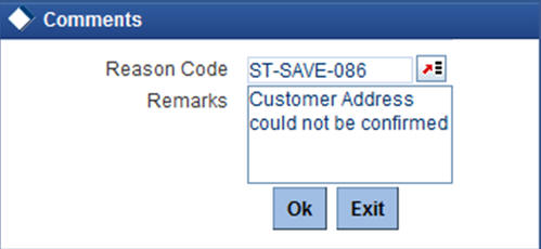 On clicking the ‘Escalate’ button, the system invokes the ‘Comments’ screen.