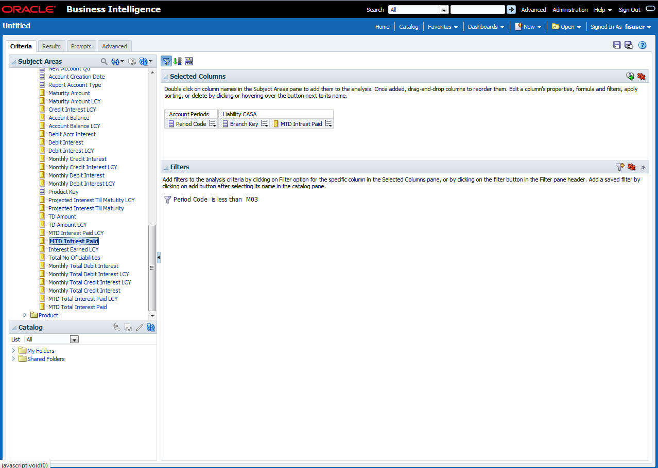 The subject areas that you select for a particular report decide the data that needs to be taken for generating the report. You can expand the folders mentioned above and select the columns that are required in the report.