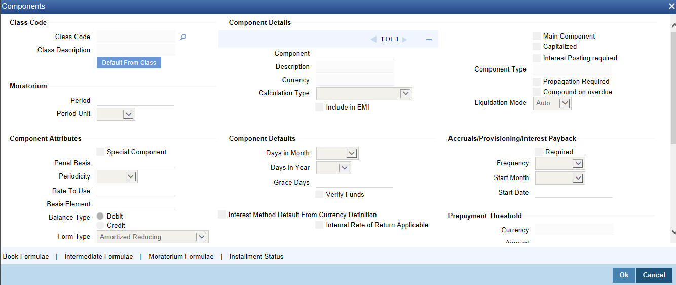In this screen, you can enter basic information about a product such as the Product Code, the Description, etc. Information related to specific attributes of a product such as accrual details, tenor, account roles and heads, the events etc. have to be defined in the respective sub-screens.
