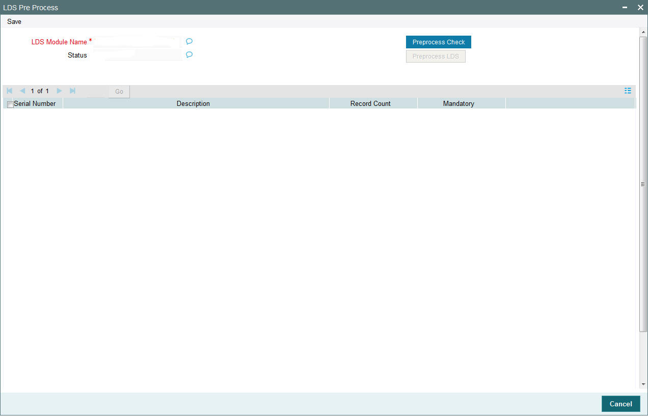 Launch LDPREPRC screen, and click ‘Preprocess Check’ button. This provides a list of mandatory checks to be cleared before proceeding with LDS process.