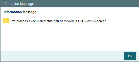 Once the mandatory checks are cleared, click ‘PreProcess LDS’ button to trigger pre-process execution.
