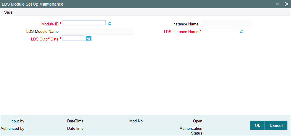 Launch SMDLDMOD screen and maintain LDS module record using the newly created instance and cut-off date identified for LDS processing.