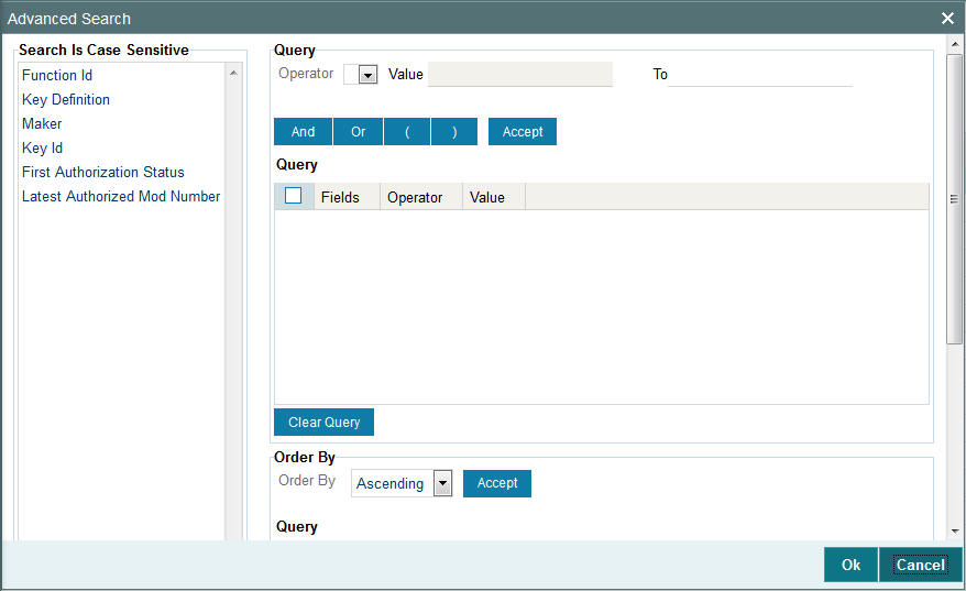 If you decide to cancel the ordering you have specified, click ‘Clear Query’ button. The screen clears and you can specify a new order.