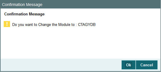 To change the current module, click the module ID to which you want to change to from the list of displayed records. System displays a ‘Confirmation Message’ window in which the following confirmation message is displayed: