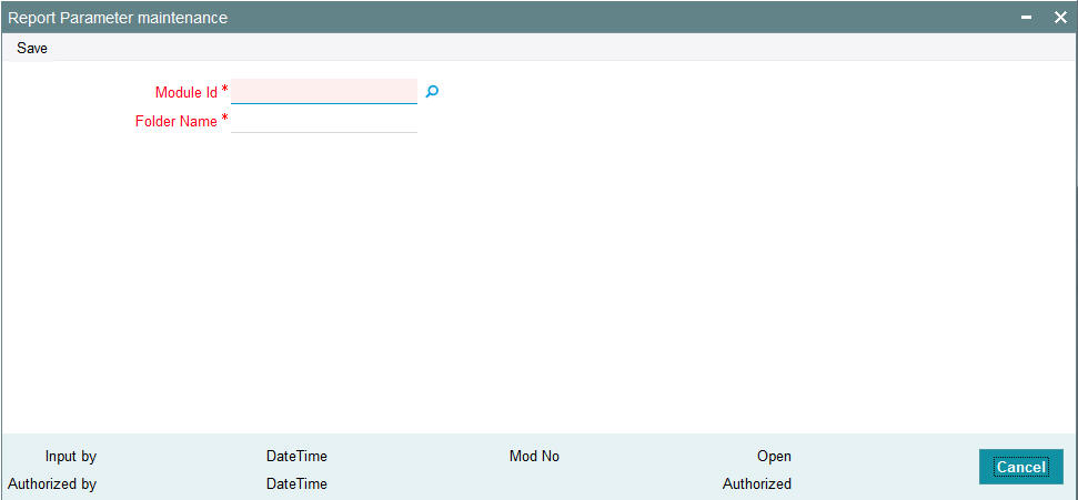 You can maintain report spool path for each module. The reports will be extracted from the respective folders against each module. The module code and folder names will be defined at this level. You can maintain report parameter using ‘Report Parameter Maintenance’ screen.