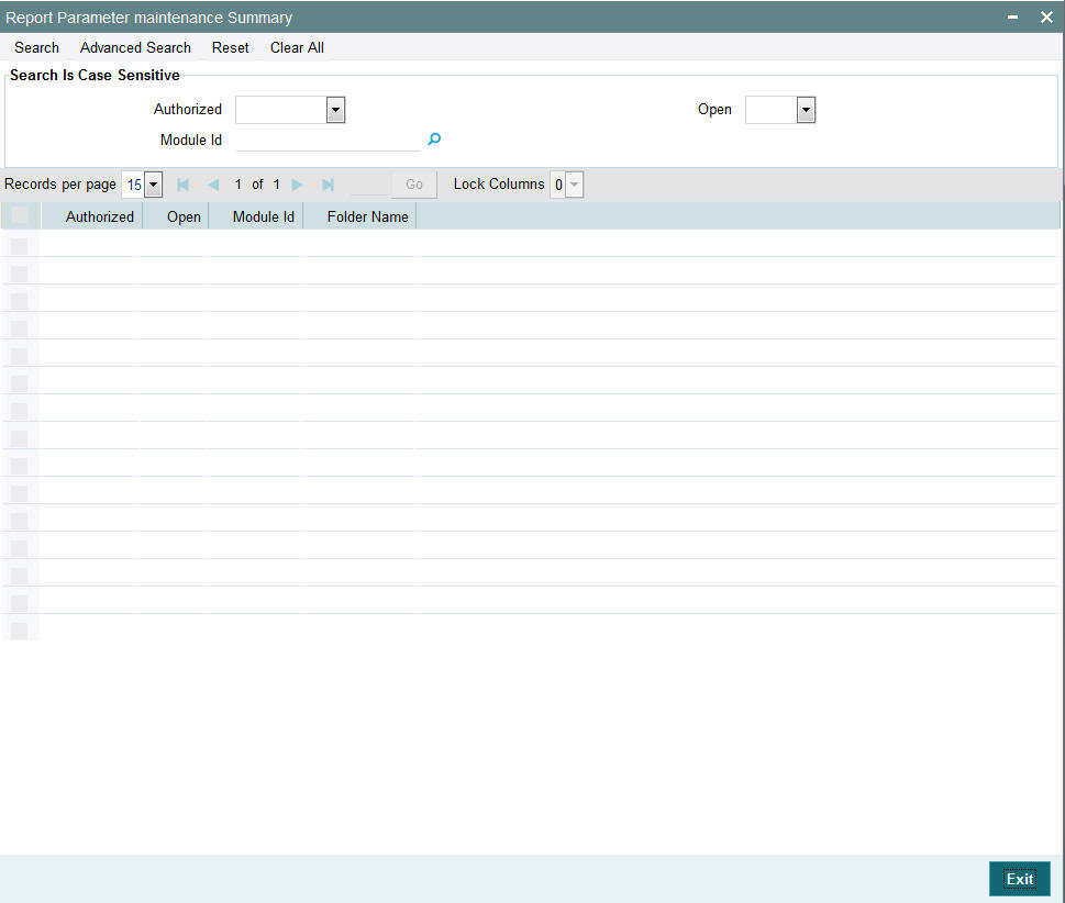 You can invoke ‘Report Parameter Maintenance Summary’ screen by typing ‘RPSPARAM’ in the field at the top right corner of the Application tool bar and clicking on the adjoining arrow button.