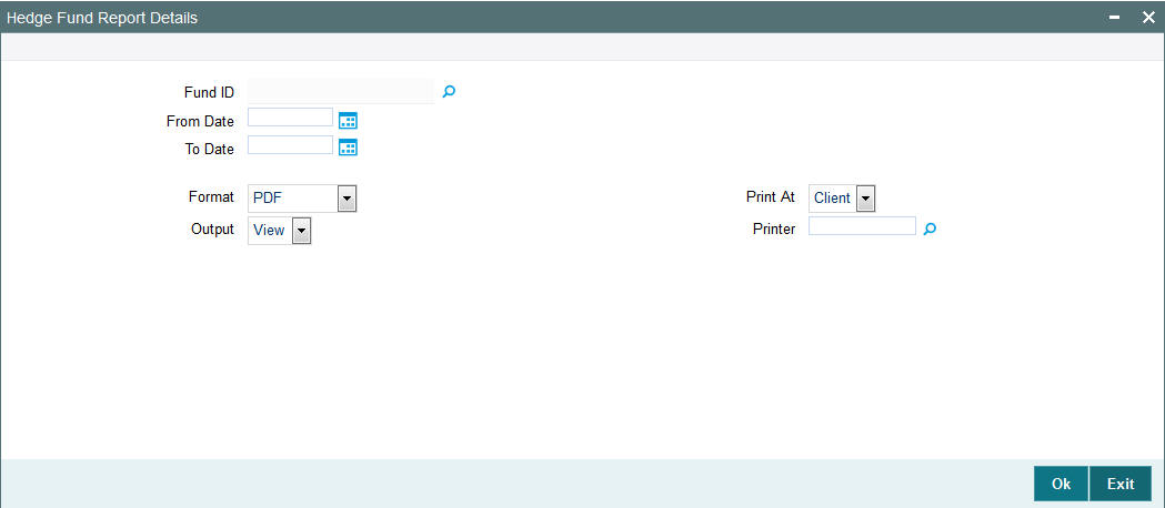 Various reports can be printed at Fund Manager level. Transaction summary reports can be printed on a daily basis or at a regular frequency. This is invariably set up as a scheduled activity of EOD.