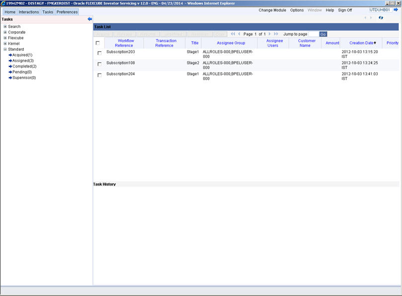 In this stage, you can launch the screen to initiate the BPEL process. On launching the screen, the system assigns the BPEL process to your User ID.
