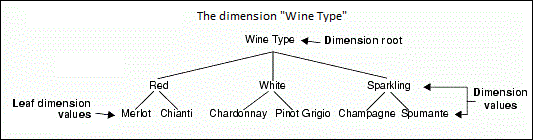 The following figure illustrates a simple dimension named "Wine Type":