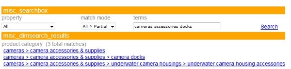 Any of the dimension values ("men's clothing", "cargo", "pants", ) can be searched on and returned as a match.