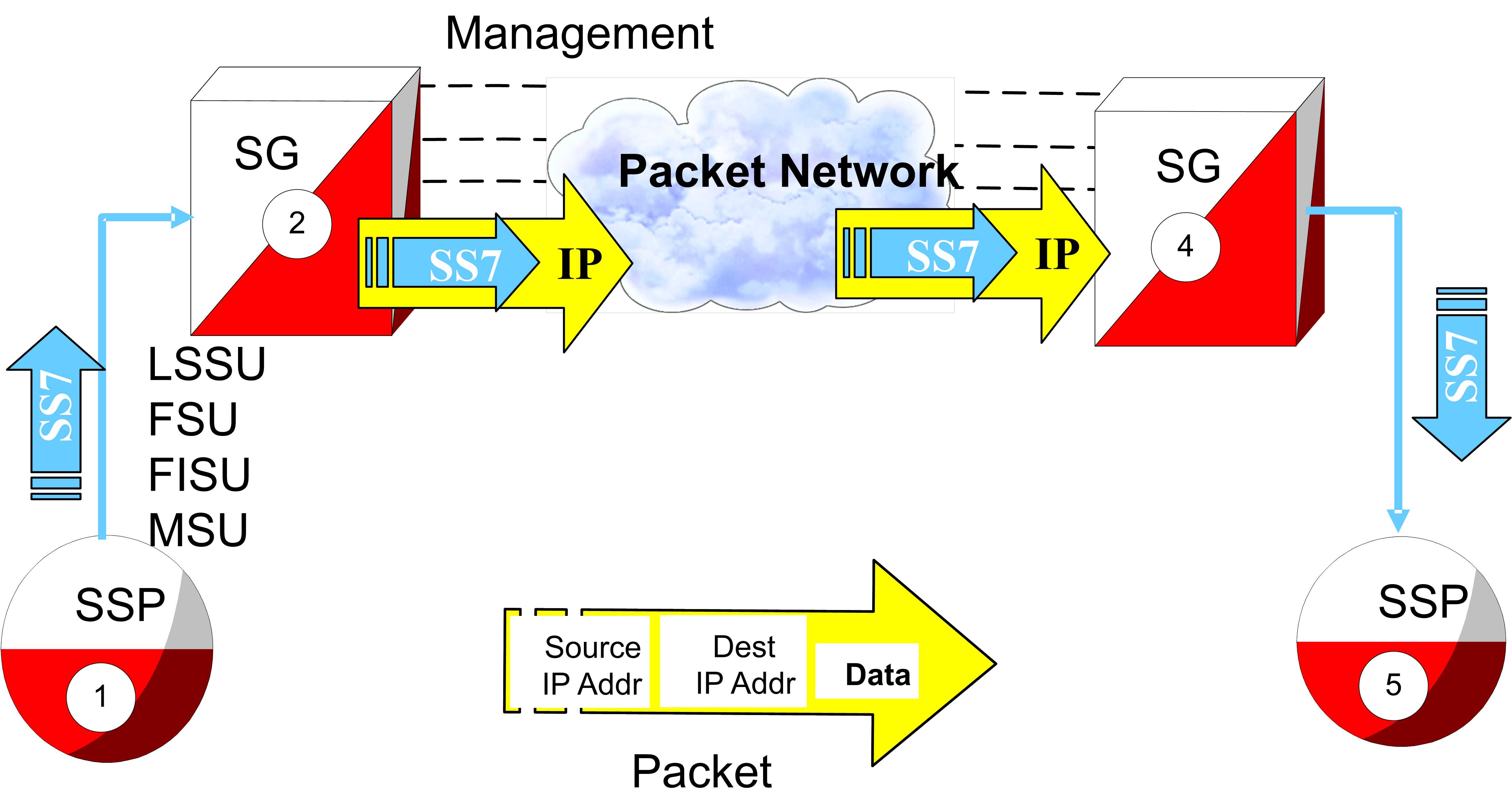 - The packet is delivered to the Signaling Gateway on the receiving network. The SS7 information is recovered from the IP packet.