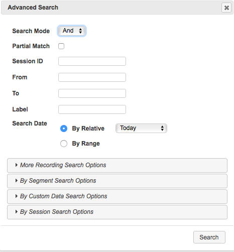 You can perform more advanced searches for recordings. Advanced searches allow more search options, including multiple search fields and partial matching.
