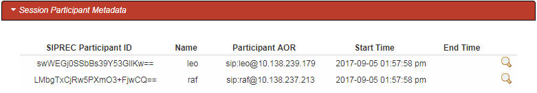 You can view specific participant metadata, including extension metadata, about a recording by clicking Session Participant Metadata on the Recording Details page.