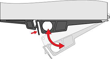 親指と人差し指を使って、リリースボタンをレバーの穴の方向に両側から押してレバーを外します。