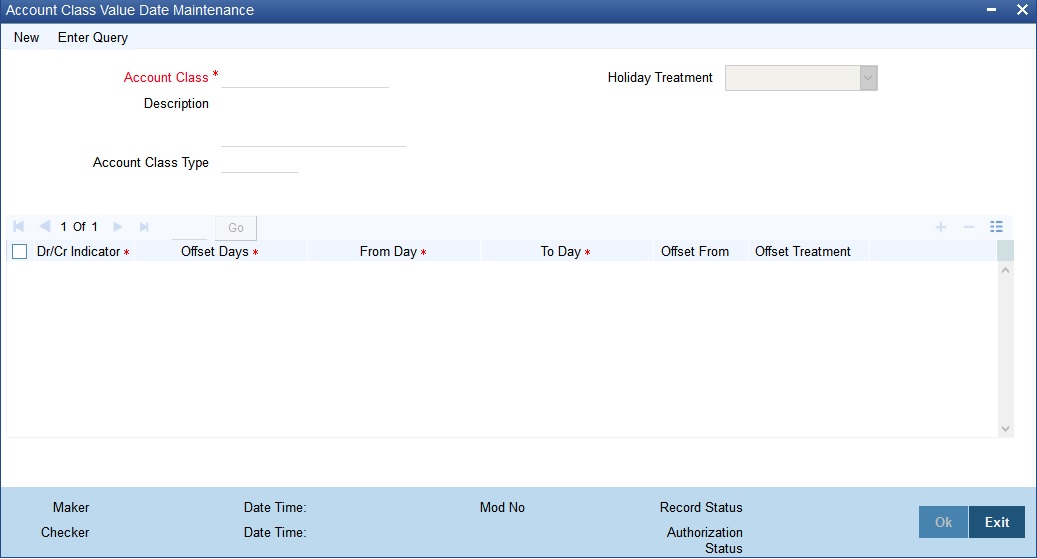 You can invoke the Account Class Value Date Maintenance screen by typing ‘STDACCVD’ in the field at the top right corner of the Application tool bar and clicking the adjoining arrow button.