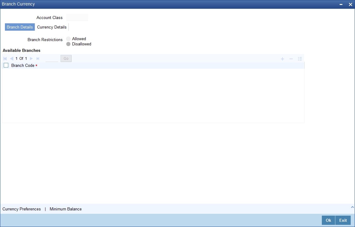 Identifying and assigning preferred branches, currencies and customers to the account class.