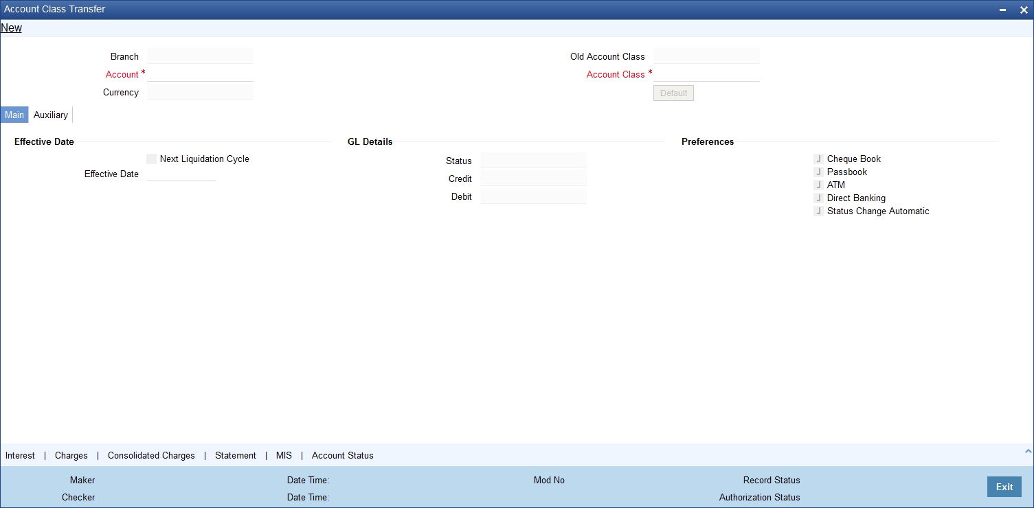 Oracle FLEXCUBE facilitates the change of account class at the customer level without changing the customer account number. Depending on the destination account class, system defaults reports the reporting GL lines and IC related values.