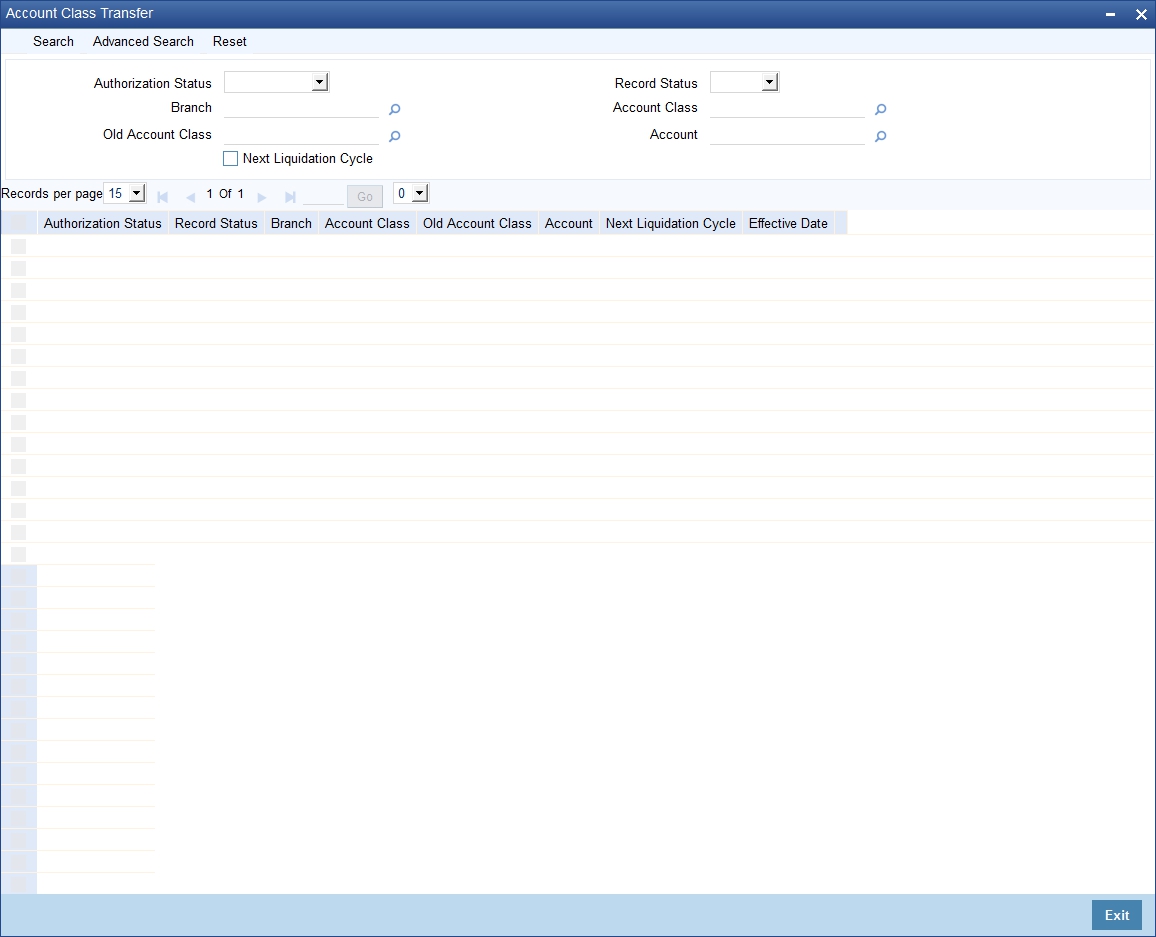 Click ‘Account Status’ button in the ‘Account Class Transfer’ screen to invoke ‘Account Status’ screen.