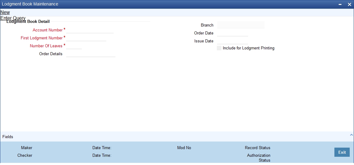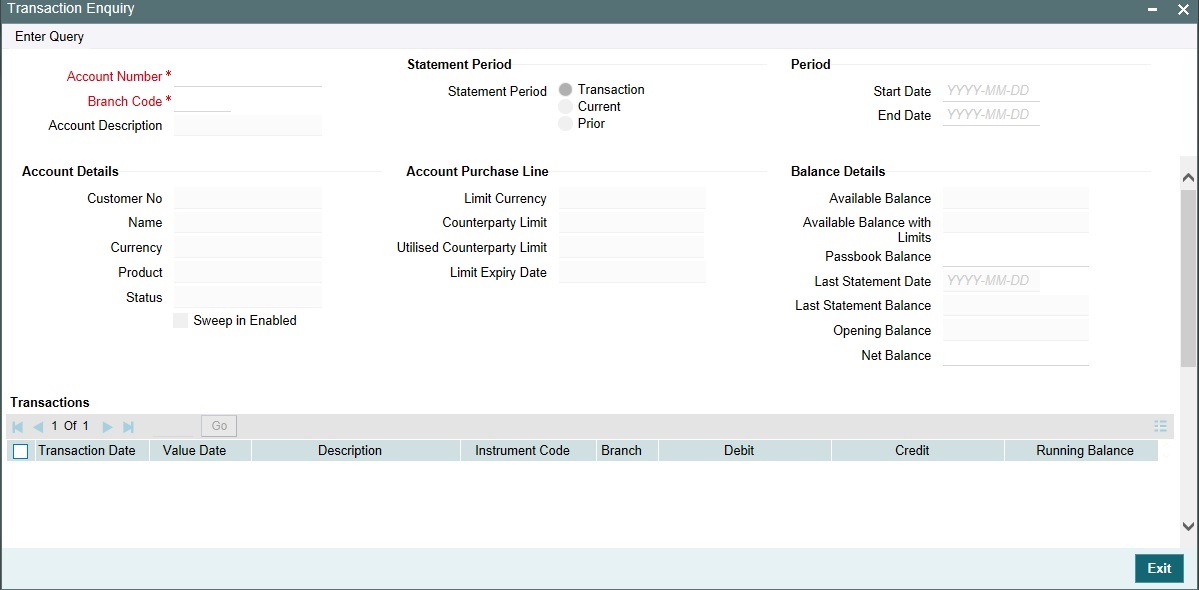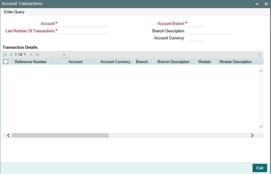 In the above screen, you can base your queries on any or all of the following parameters and fetch the required records: