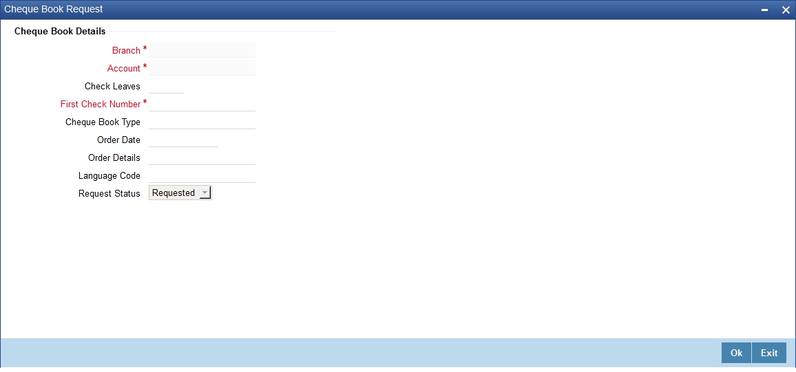 If you have indicated that the account holder needs to be provided with the check book facility, you can also specify whether automatic reordering of cheque books should be allowed for the account. In addition, you will have to maintain the check book details through the respective screen. Similarly, you can choose to indicate that the account holder needs to be provided with a Passbook, ATM and Direct Banking facility.