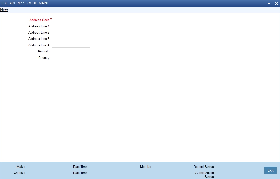 Details maintained in this screen are classified into four broad tabs and are discussed in detail in the subsequent sections: